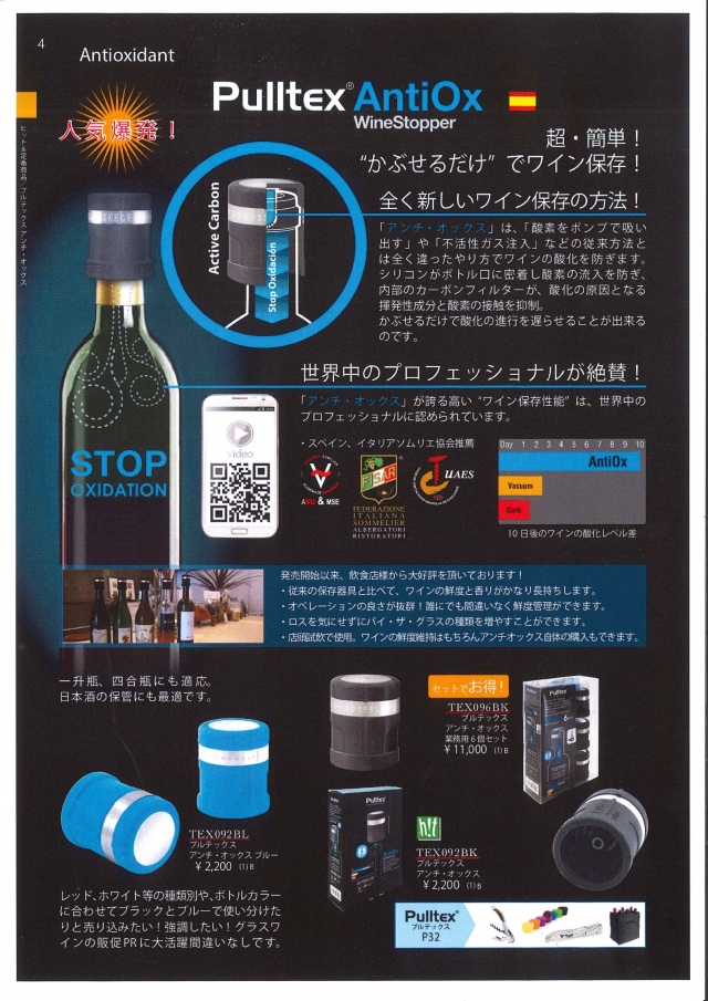 スペイン生まれのプルテックスのアンチ・オックスはその名の通り、開封瓶への酸素の流入を防いでくれるので、お酒の酸化を防ぎます。